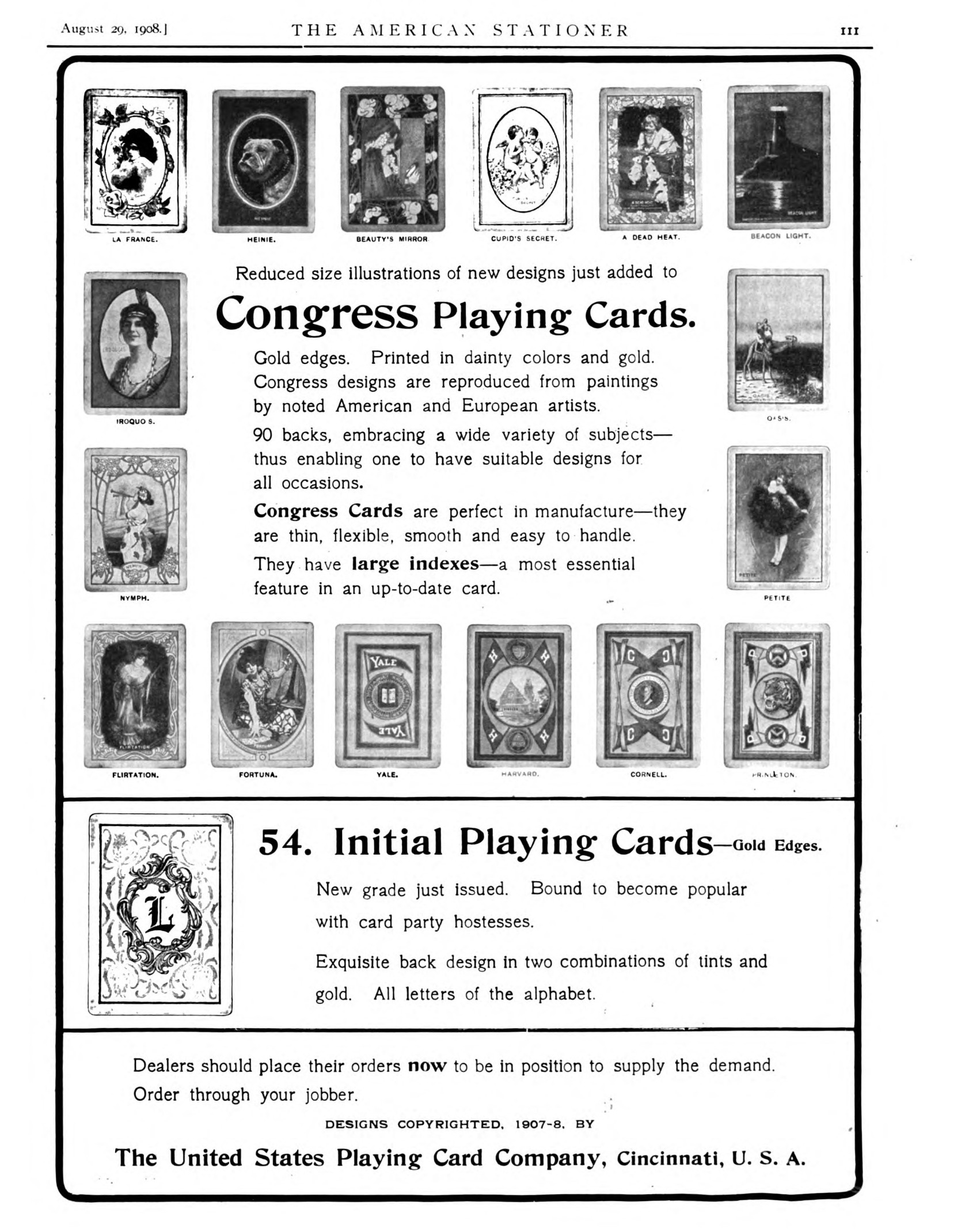 Four Ivy League universities were first released in 1908: Cornell, Harvard, Princeton, and Yale. A fifth Ivy League university, Pennsylvania, was added in 1909. Michigan (not an Ivy League school) was the final university, released in 1910.
