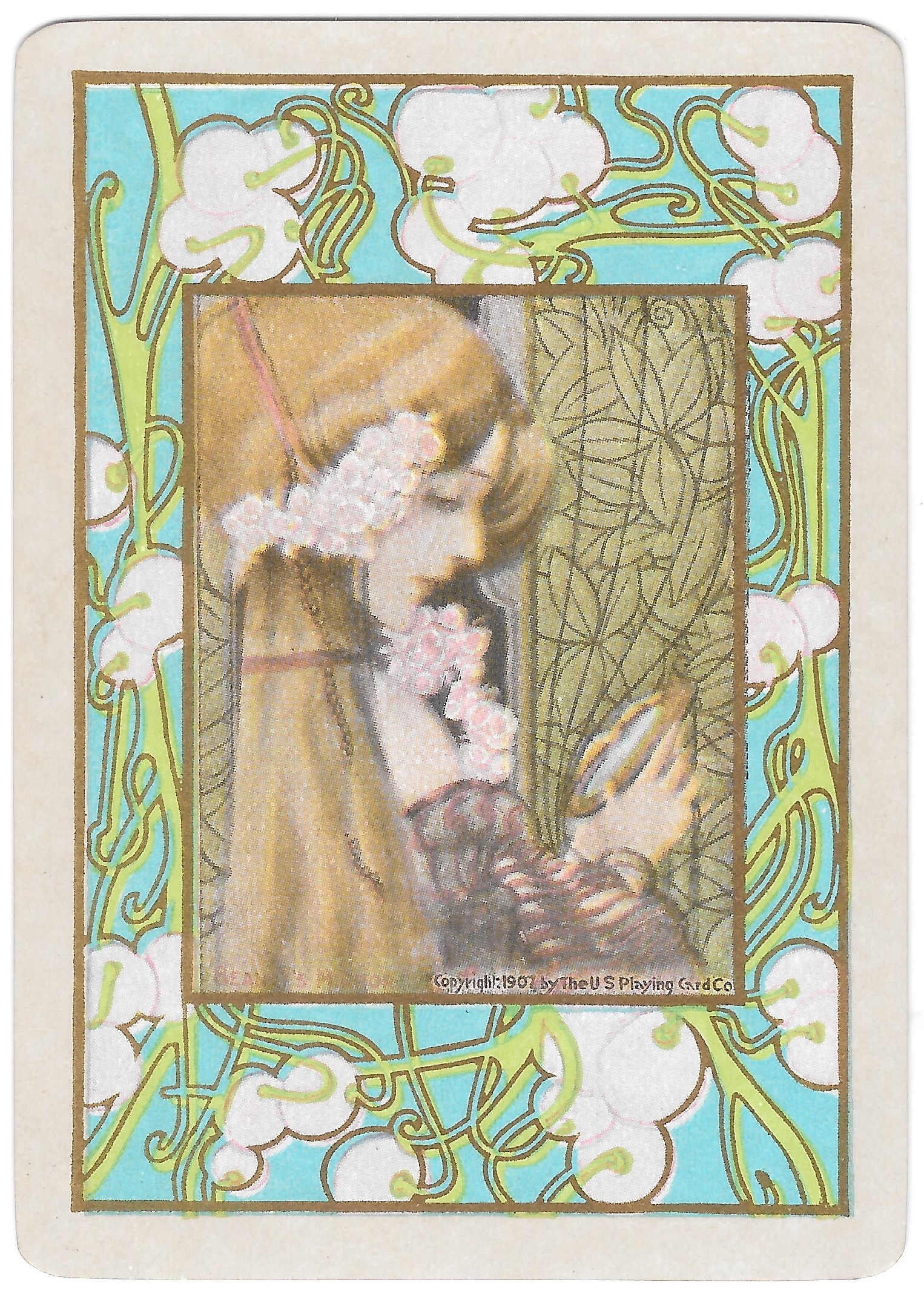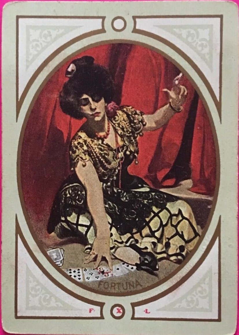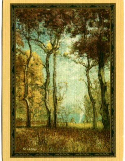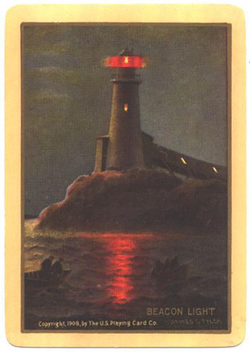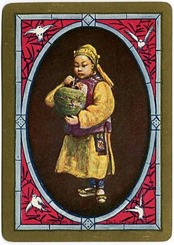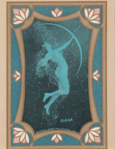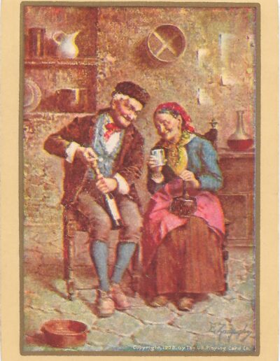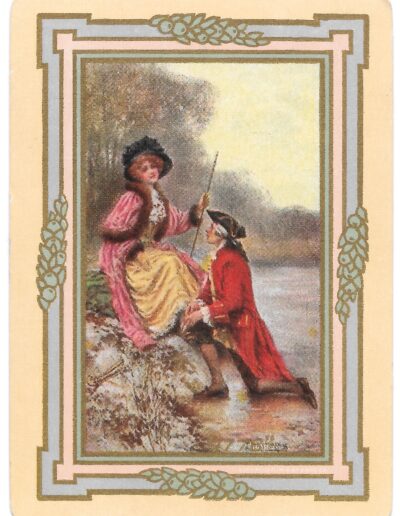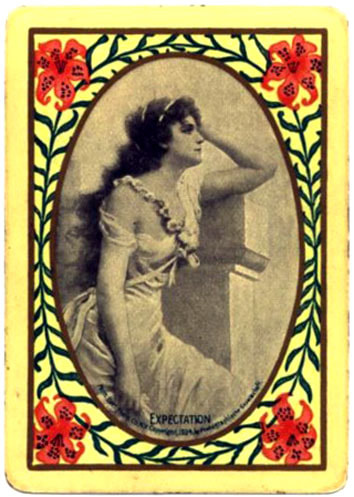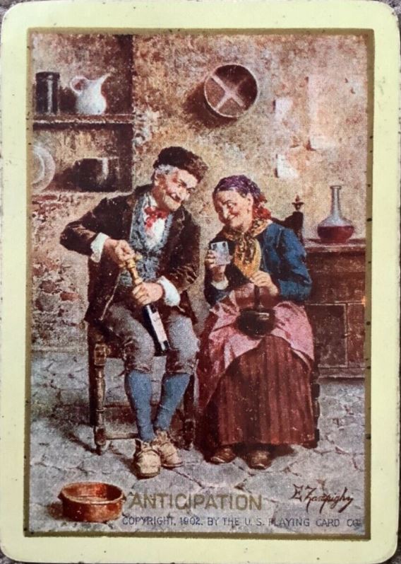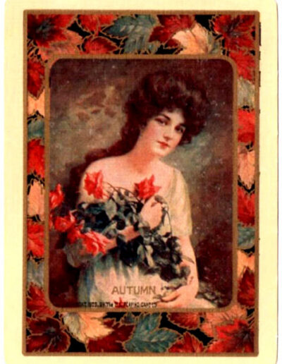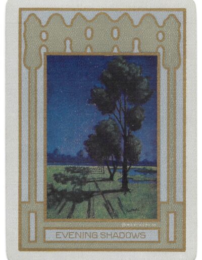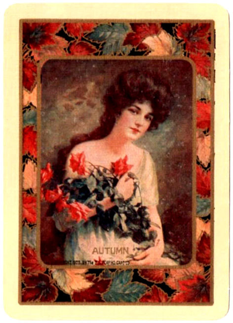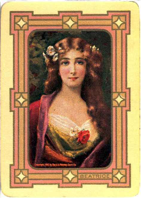 The Pictorial Series began in 1899 just before the United States Playing Card Company moved to a new factory in Norwood, Ohio, opening there in 1901. These back designs used popular artwork from American and European artists. These “Wide Size” (also known as Poker Size) cards were in use until 1924. When whist and later bridge became the card games of choice, the Congress line started printing “Bridge Size” in 1916, and in 1925 the wide size decks became obsolete. Pictured below are every known back design and color/border variation, along with dates and aces used. We strive to be as accurate as possible and will make any necessary changes as they arise.