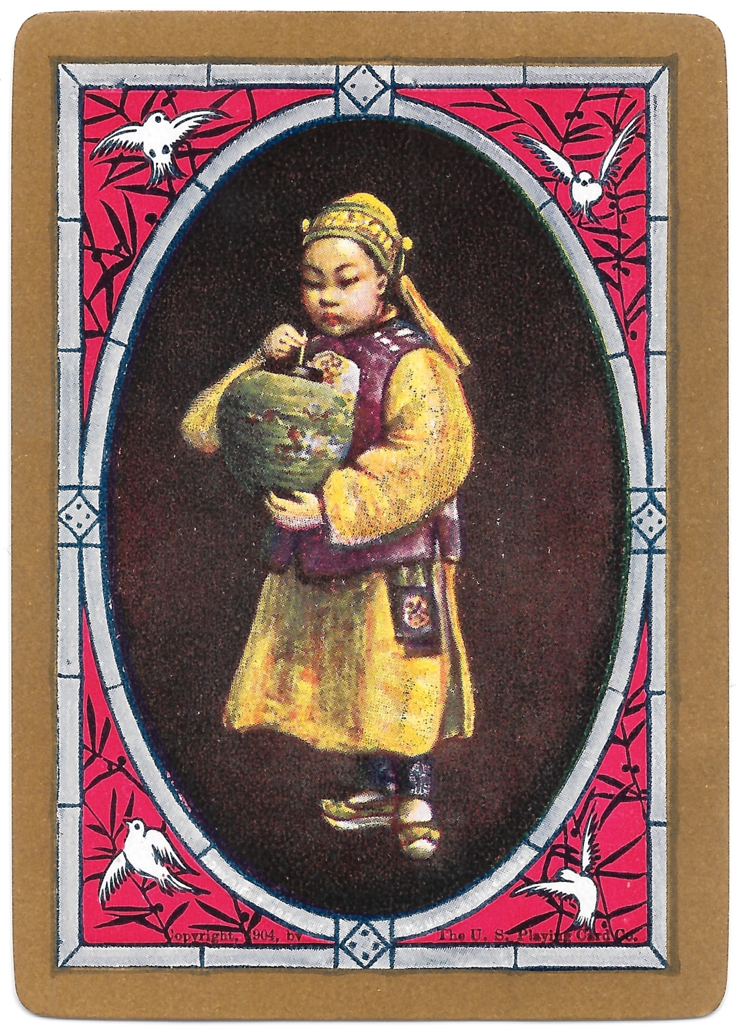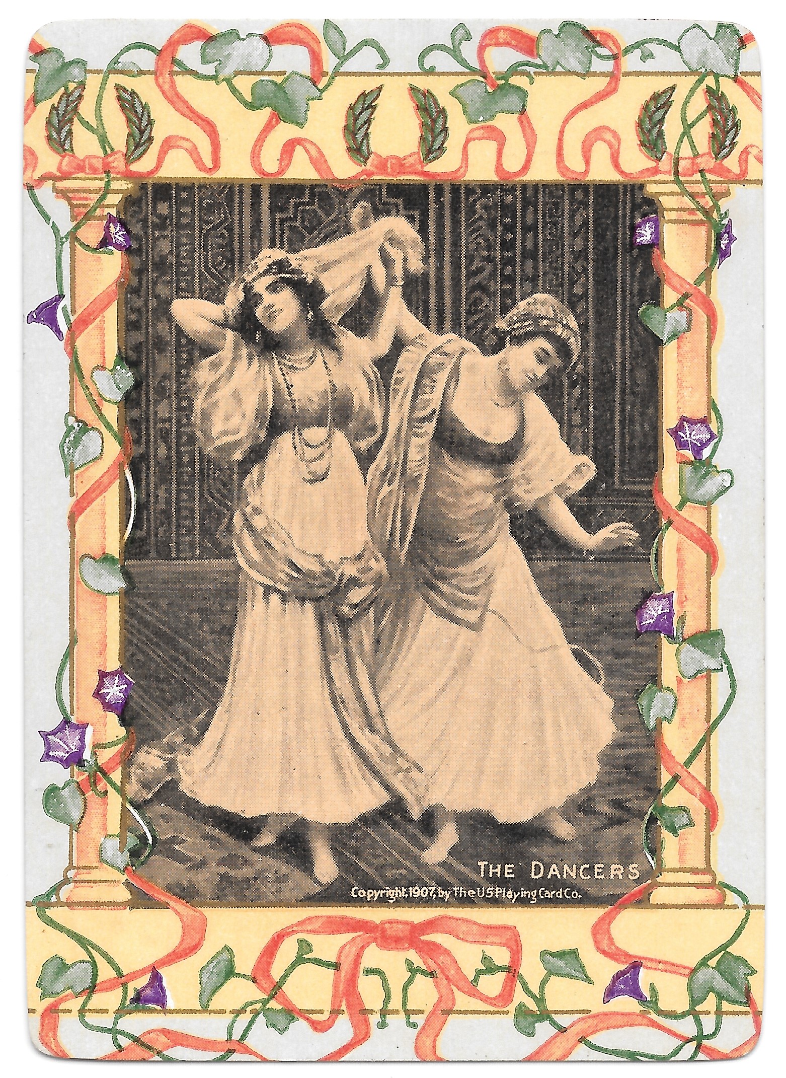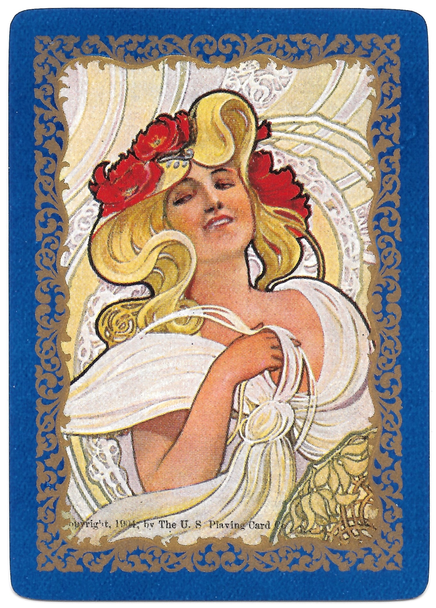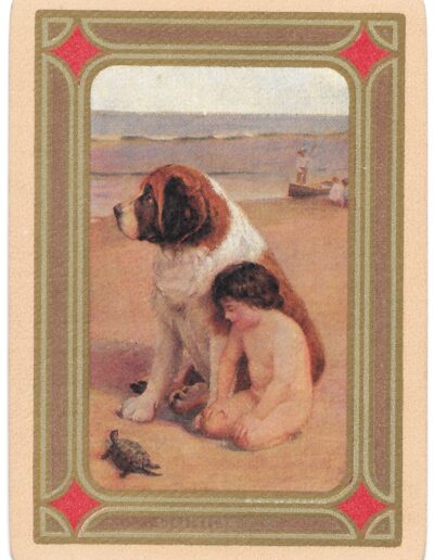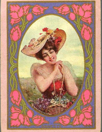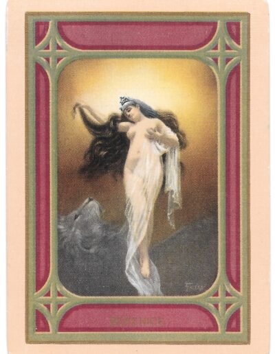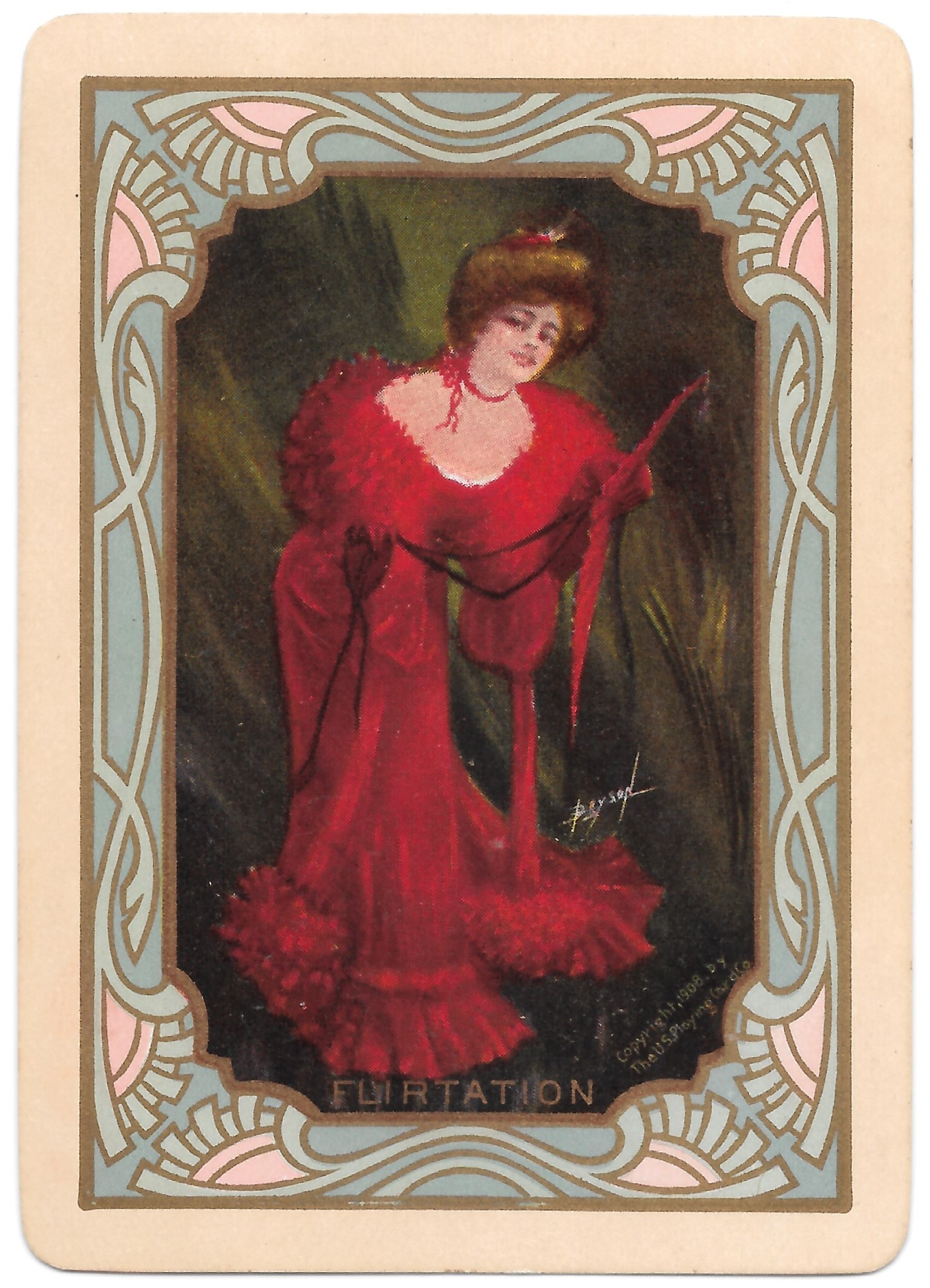 The Pictorial Series began in 1899 just before the United States Playing Card Company moved to a new factory in Norwood, Ohio, opening there in 1901. These back designs used popular artwork from American and European artists. These “Wide Size” (also known as Poker Size) cards were in use until 1924. When whist and later bridge became the card games of choice, the Congress line started printing “Bridge Size” in 1916, and in 1925 the wide size decks became obsolete. Pictured below are every known back design and color/border variation, along with dates and aces used. We strive to be as accurate as possible and will make any necessary changes as they arise.