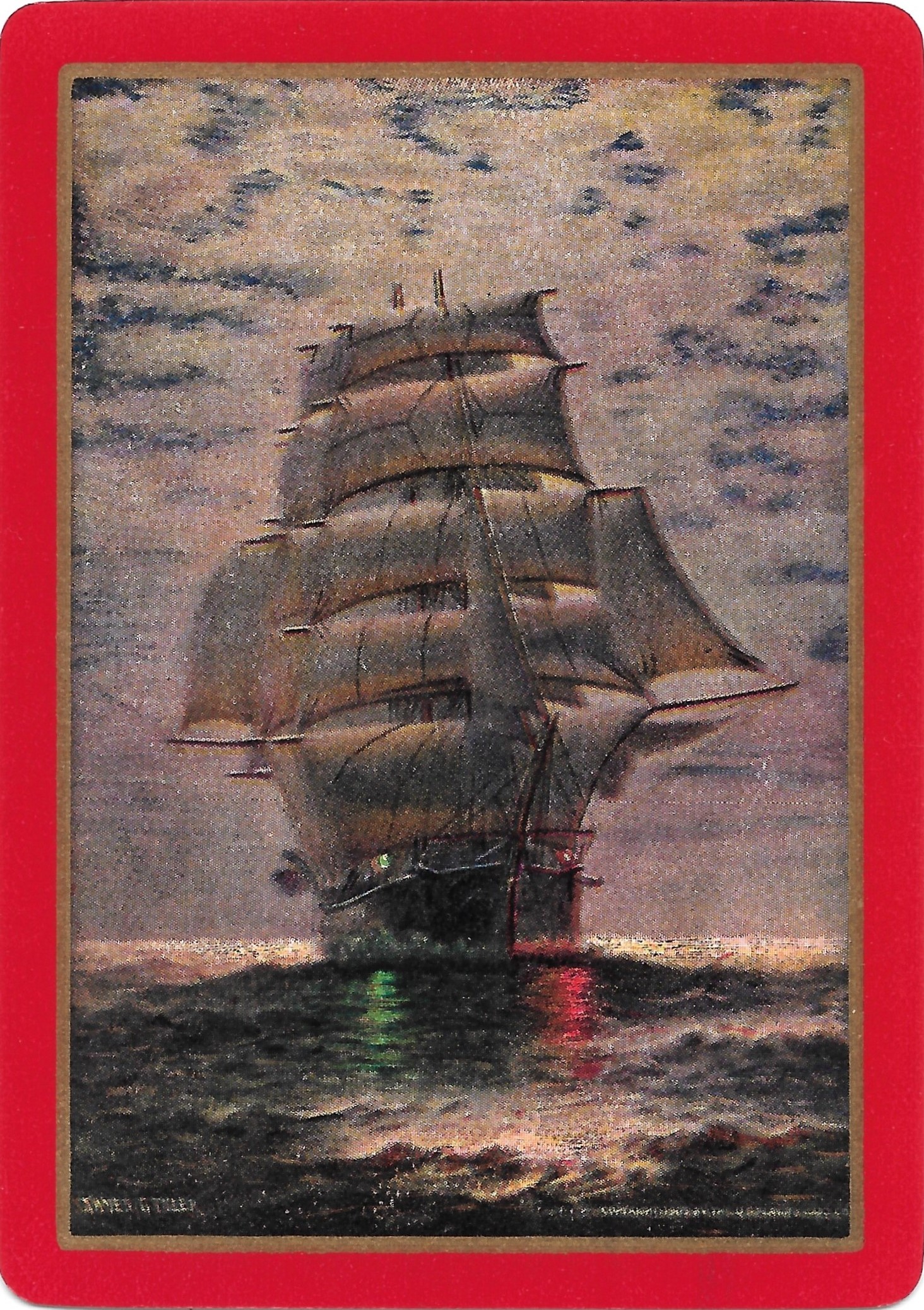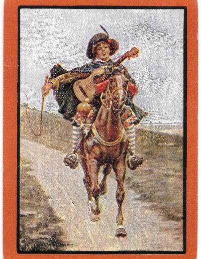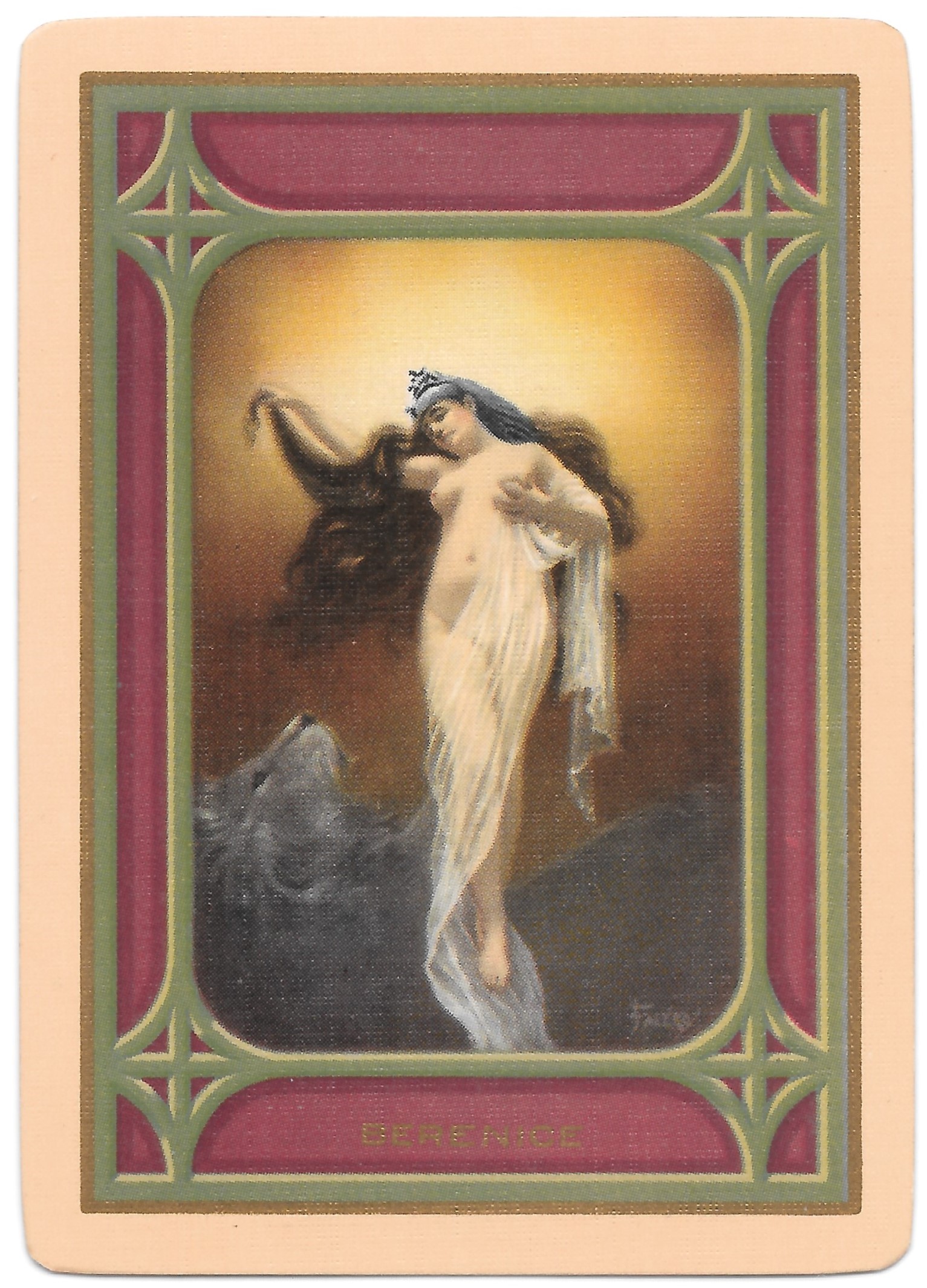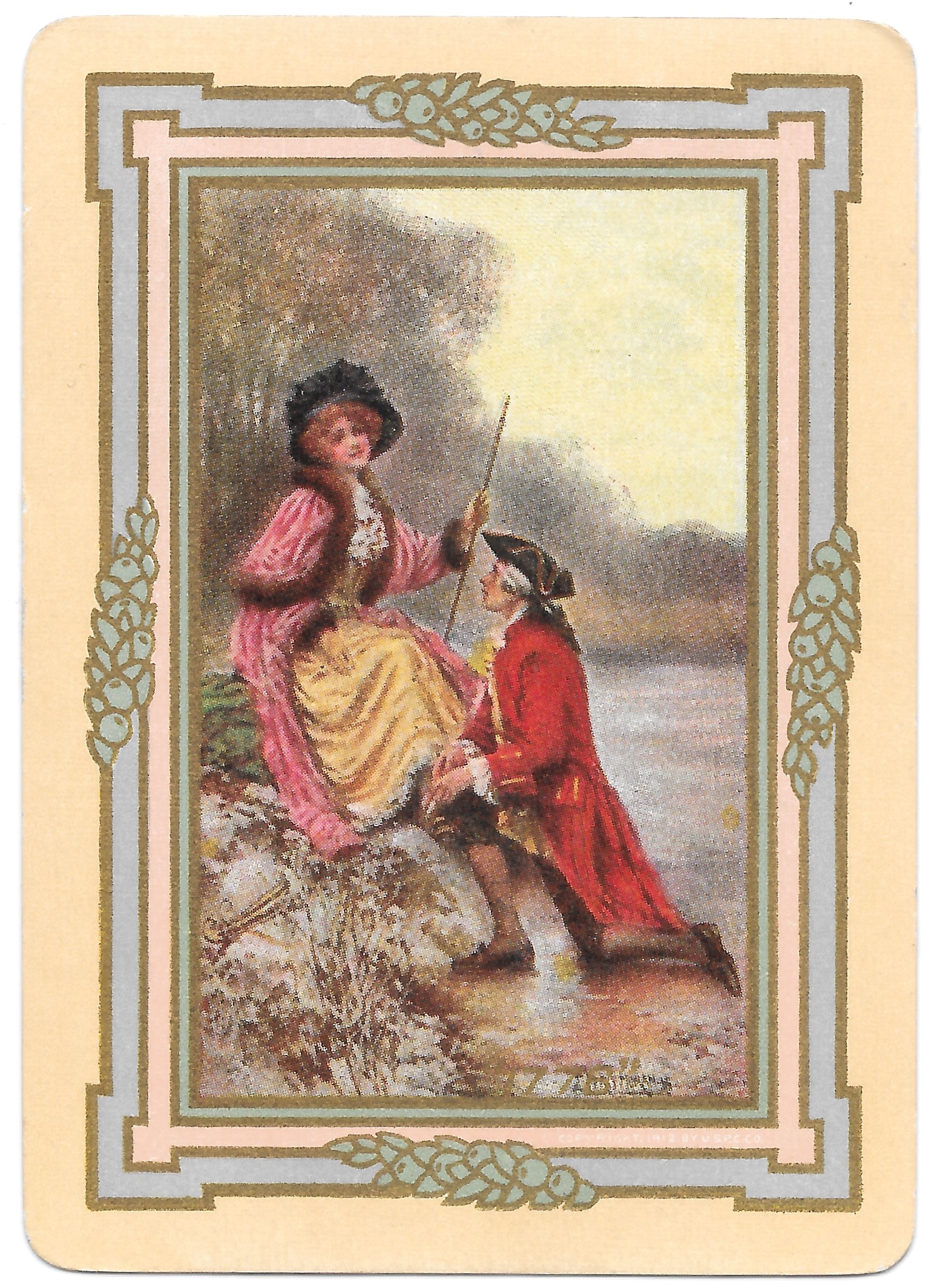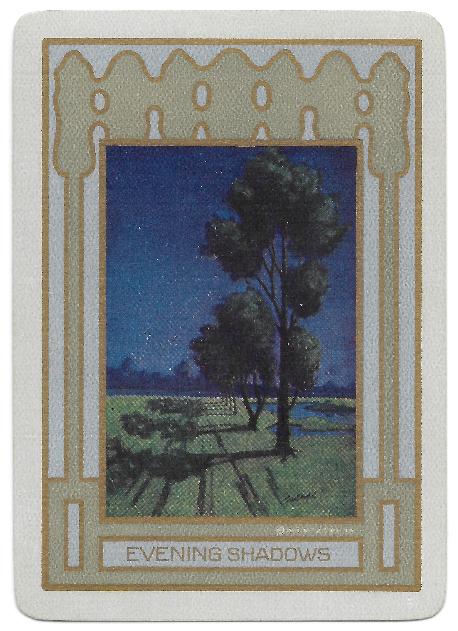 The Pictorial Series began in 1899 just before the United States Playing Card Company moved to a new factory in Norwood, Ohio, opening there in 1901. These back designs used popular artwork from American and European artists. These “Wide Size” (also known as Poker Size) cards were in use until 1924. When whist and later bridge became the card games of choice, the Congress line started printing “Bridge Size” in 1916, and in 1925 the wide size decks became obsolete. Pictured below are every known back design and color/border variation, along with dates and aces used. We strive to be as accurate as possible and will make any necessary changes as they arise.