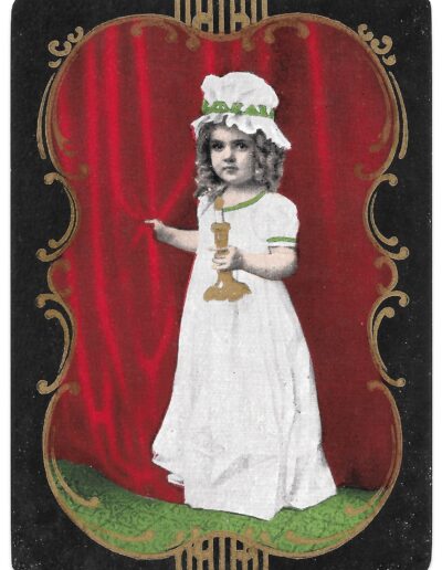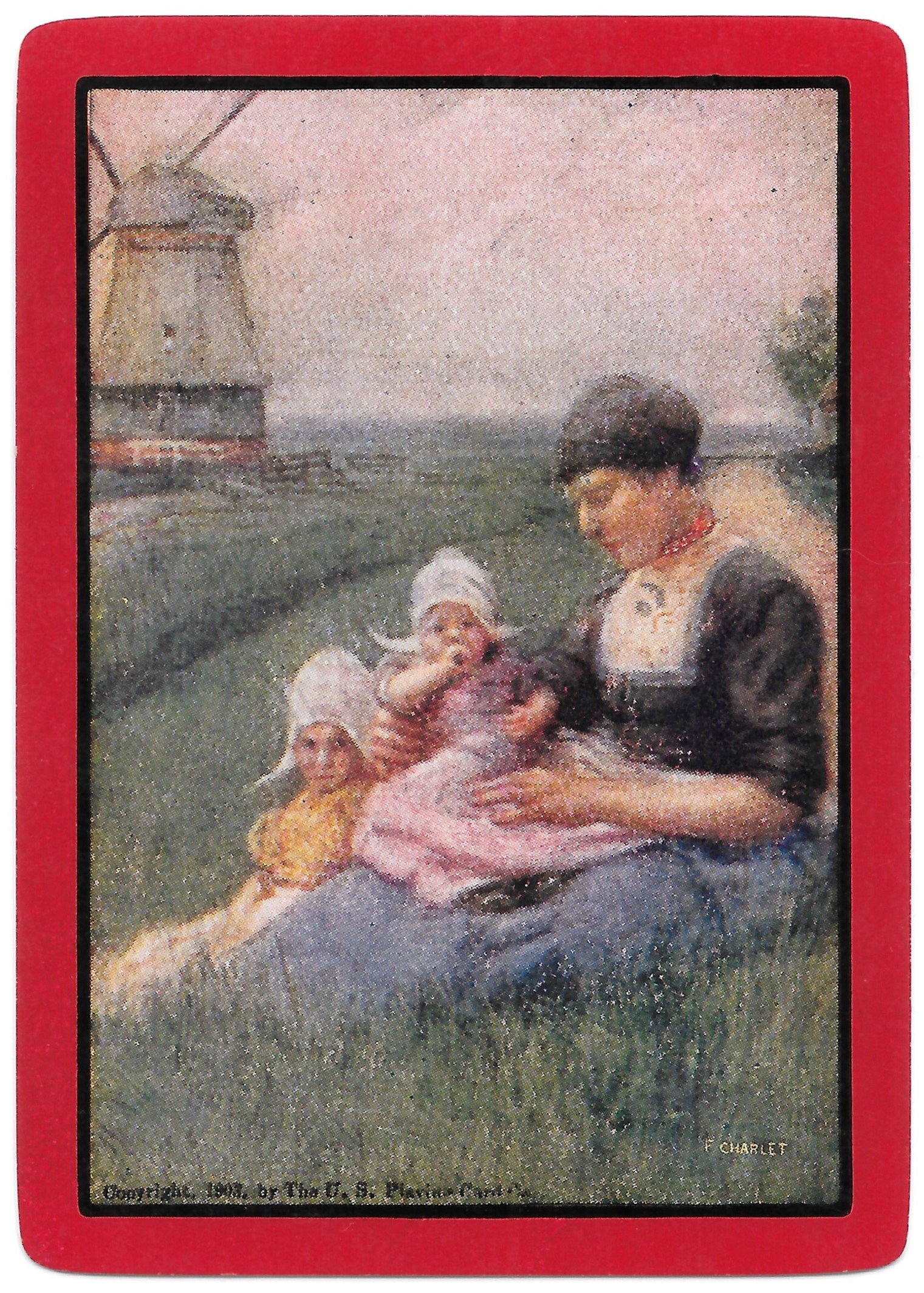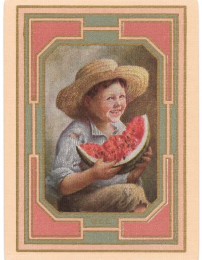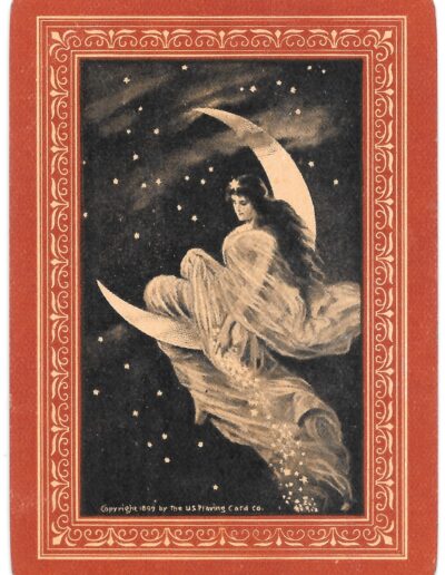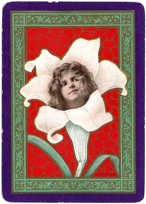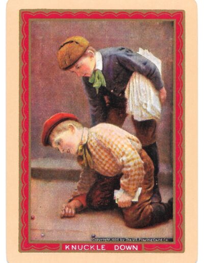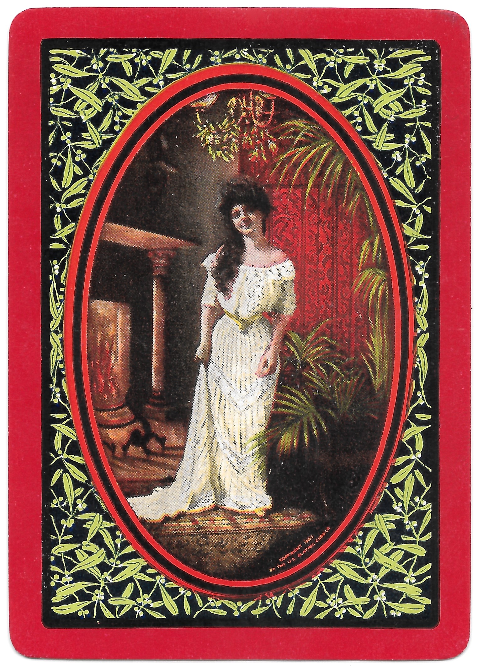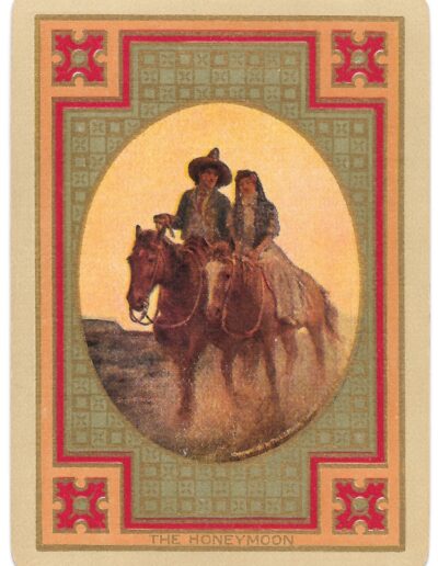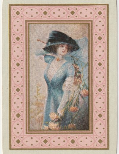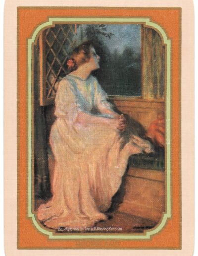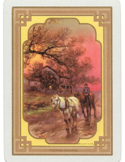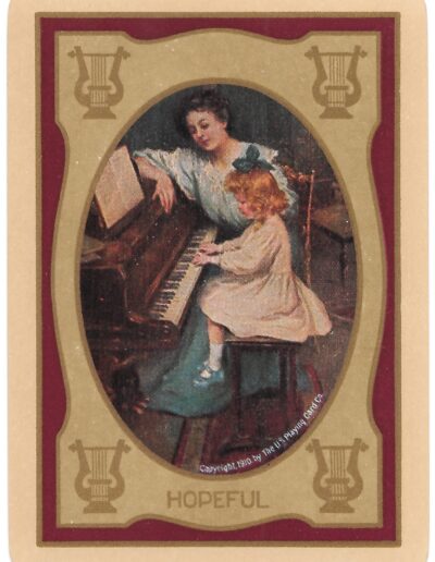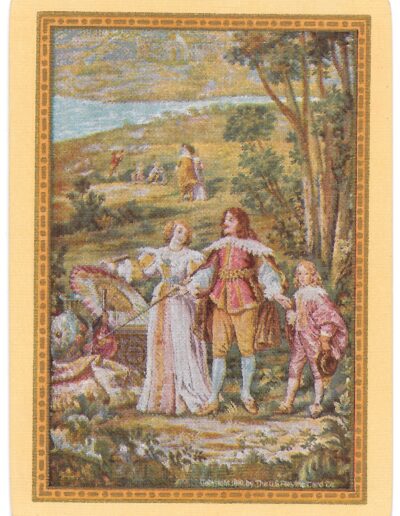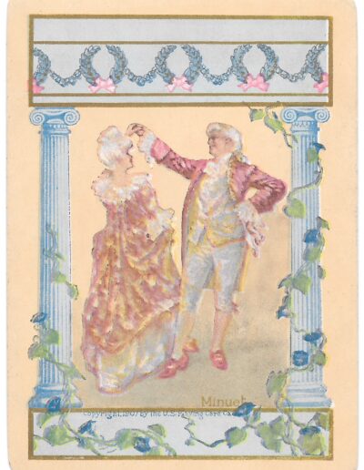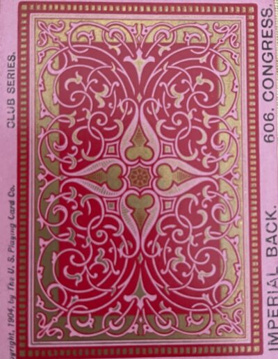 The Pictorial Series began in 1899 just before the United States Playing Card Company moved to a new factory in Norwood, Ohio, opening there in 1901. These back designs used popular artwork from American and European artists. These “Wide Size” (also known as Poker Size) cards were in use until 1924. When whist and later bridge became the card games of choice, the Congress line started printing “Bridge Size” in 1916, and in 1925 the wide size decks became obsolete. Pictured below are every known back design and color/border variation, along with dates and aces used. We strive to be as accurate as possible and will make any necessary changes as they arise.