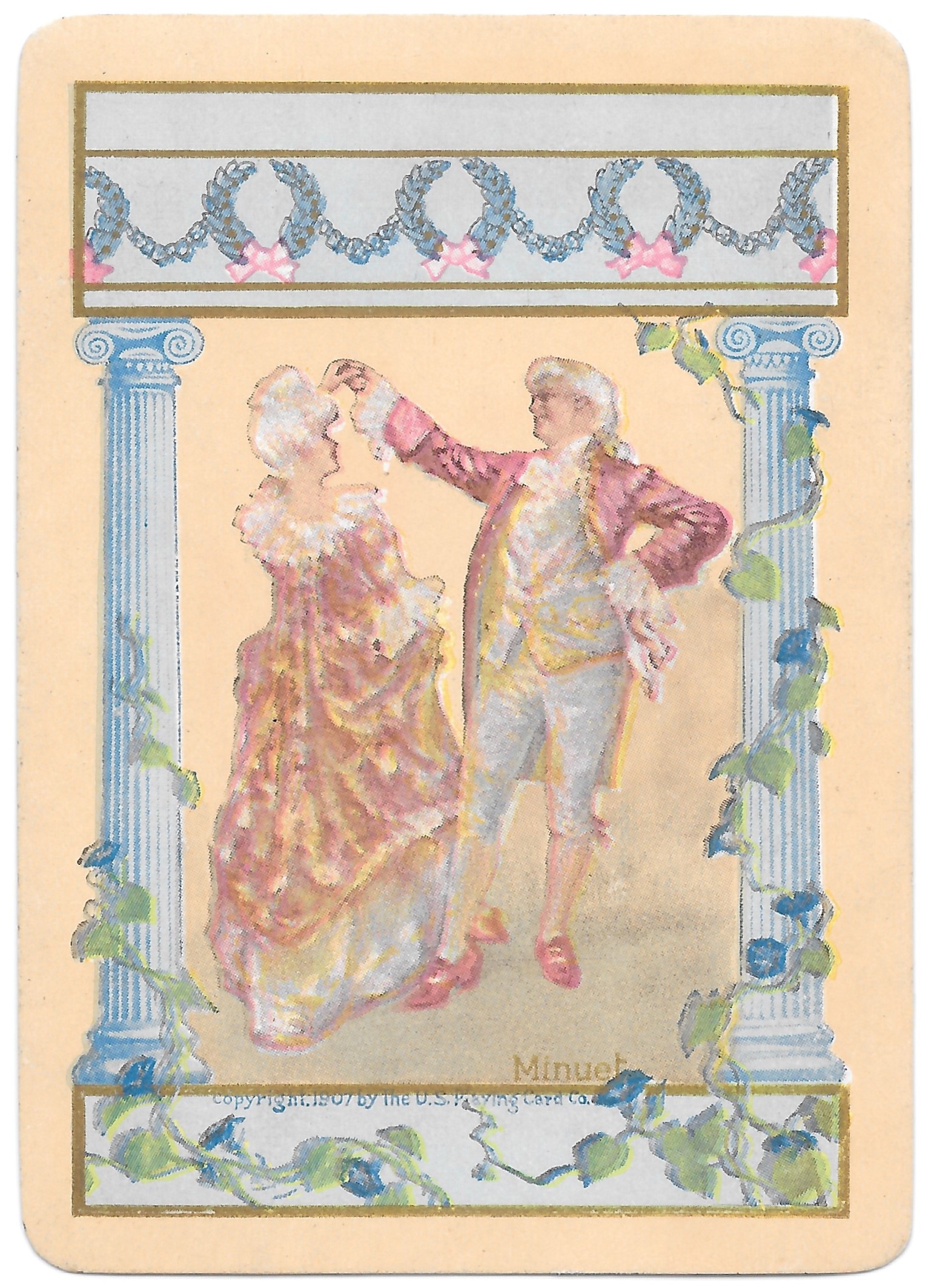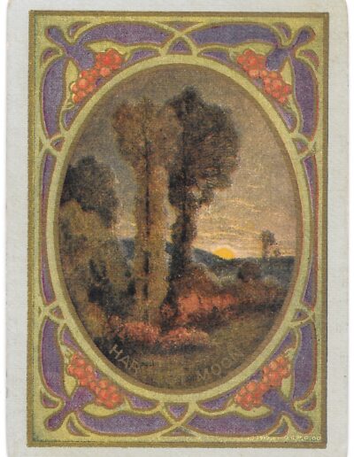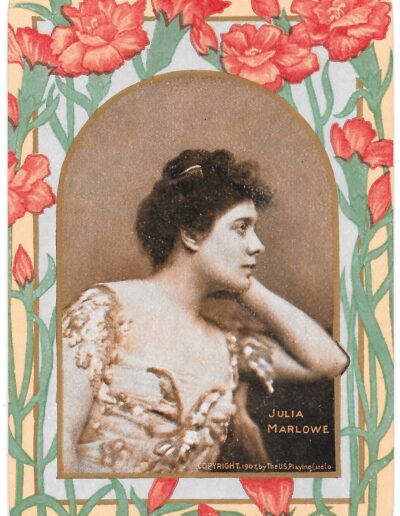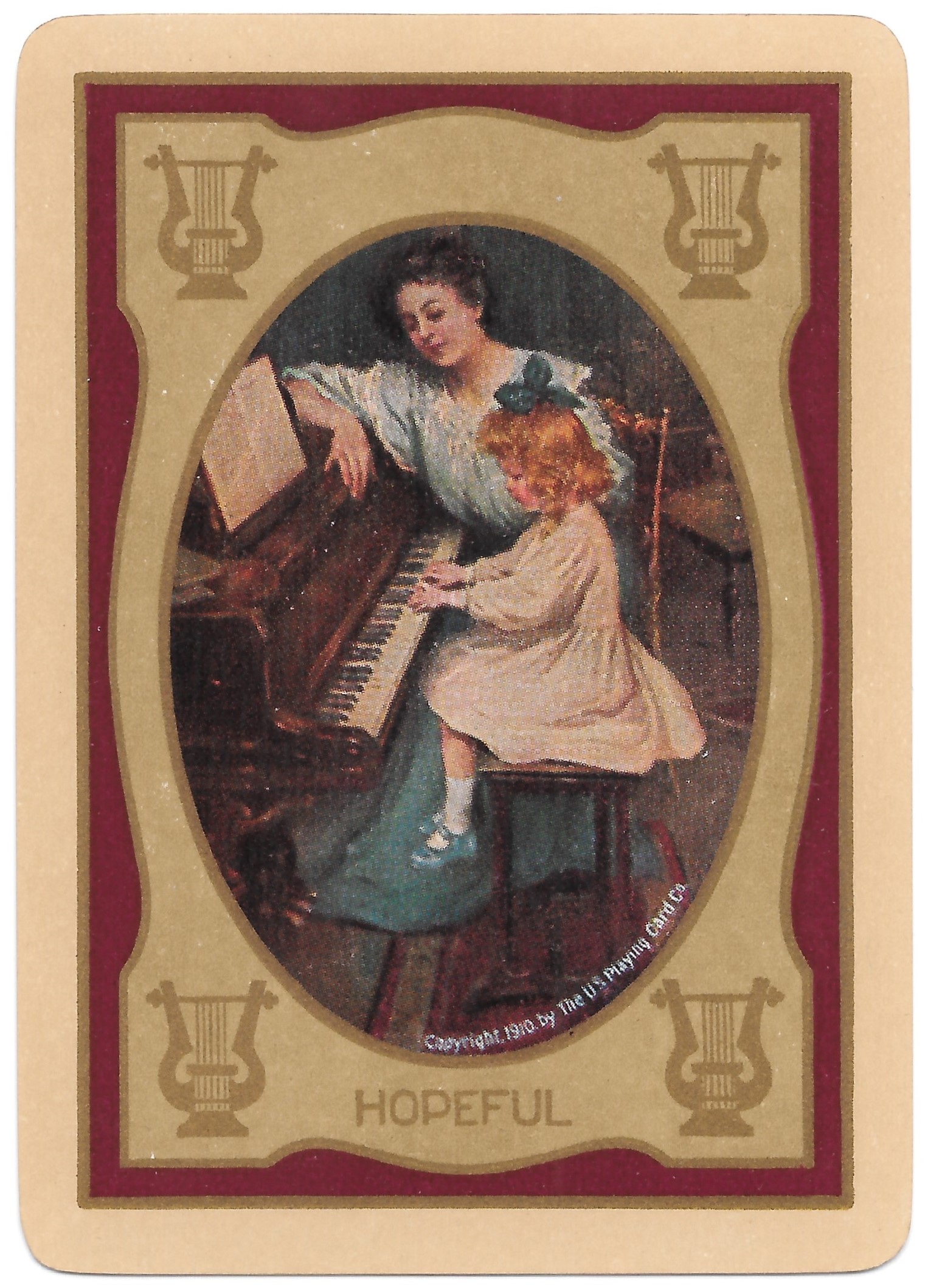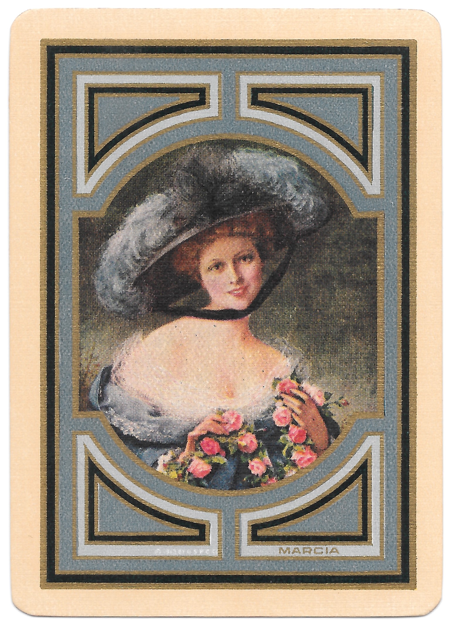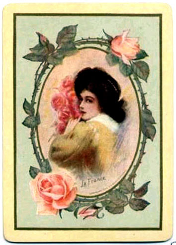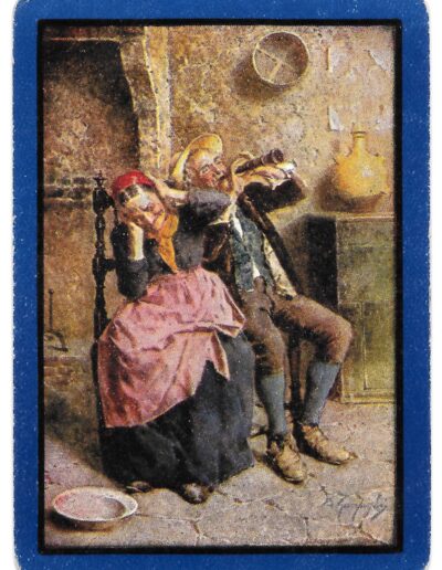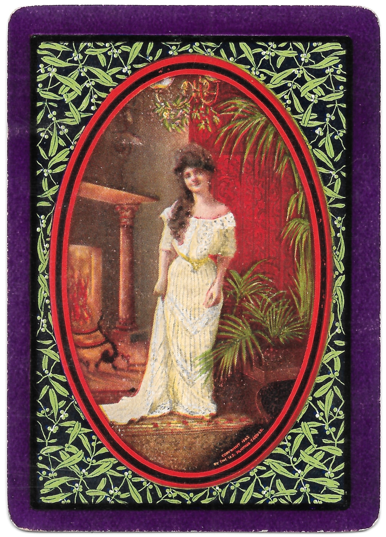 The Pictorial Series began in 1899 just before the United States Playing Card Company moved to a new factory in Norwood, Ohio, opening there in 1901. These back designs used popular artwork from American and European artists. These “Wide Size” (also known as Poker Size) cards were in use until 1924. When whist and later bridge became the card games of choice, the Congress line started printing “Bridge Size” in 1916, and in 1925 the wide size decks became obsolete. Pictured below are every known back design and color/border variation, along with dates and aces used. We strive to be as accurate as possible and will make any necessary changes as they arise.