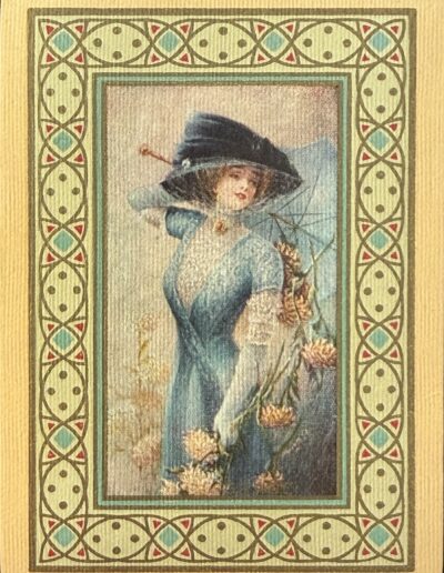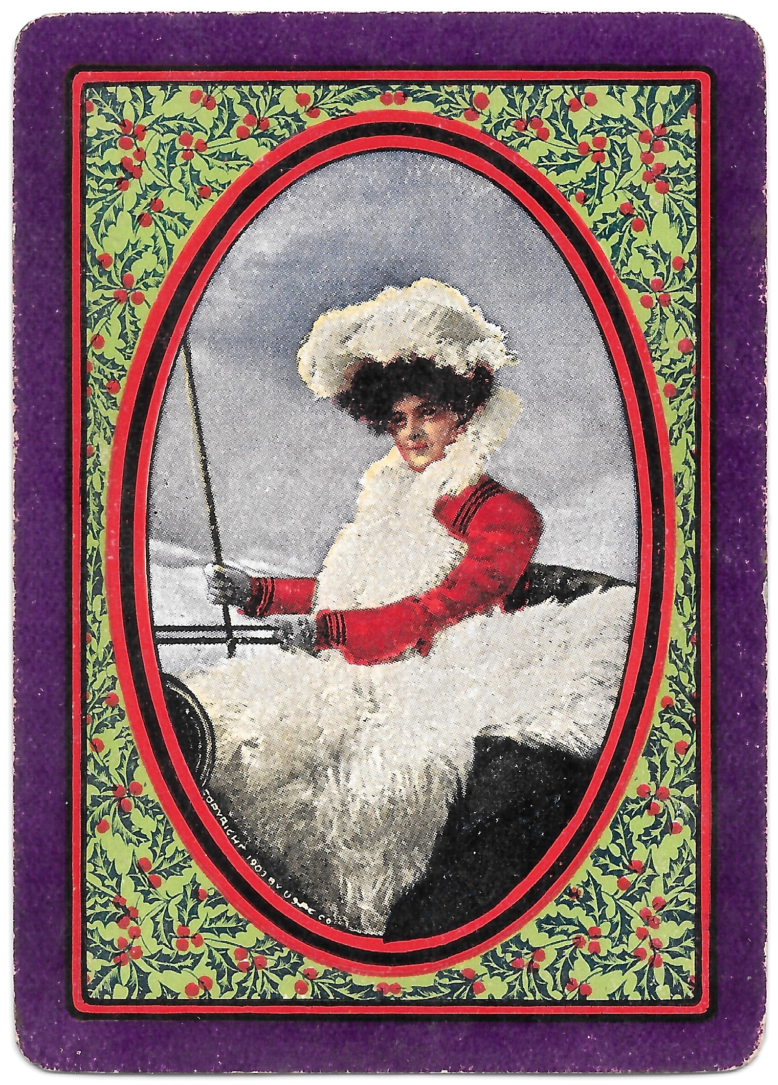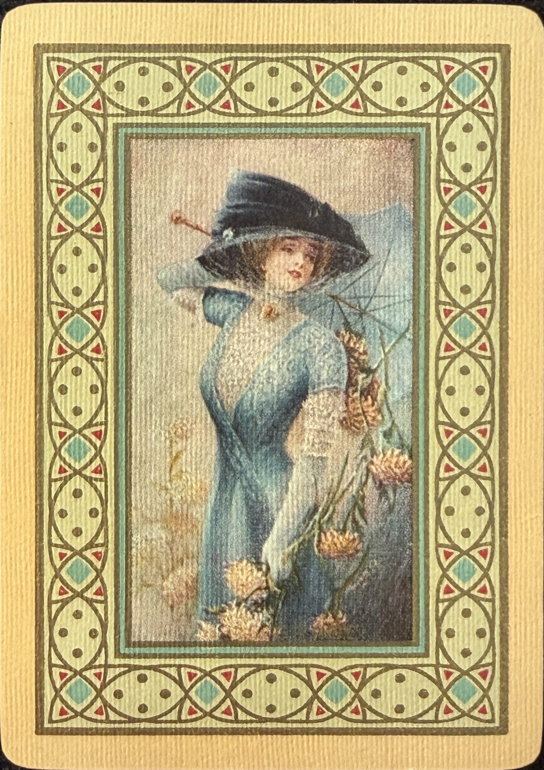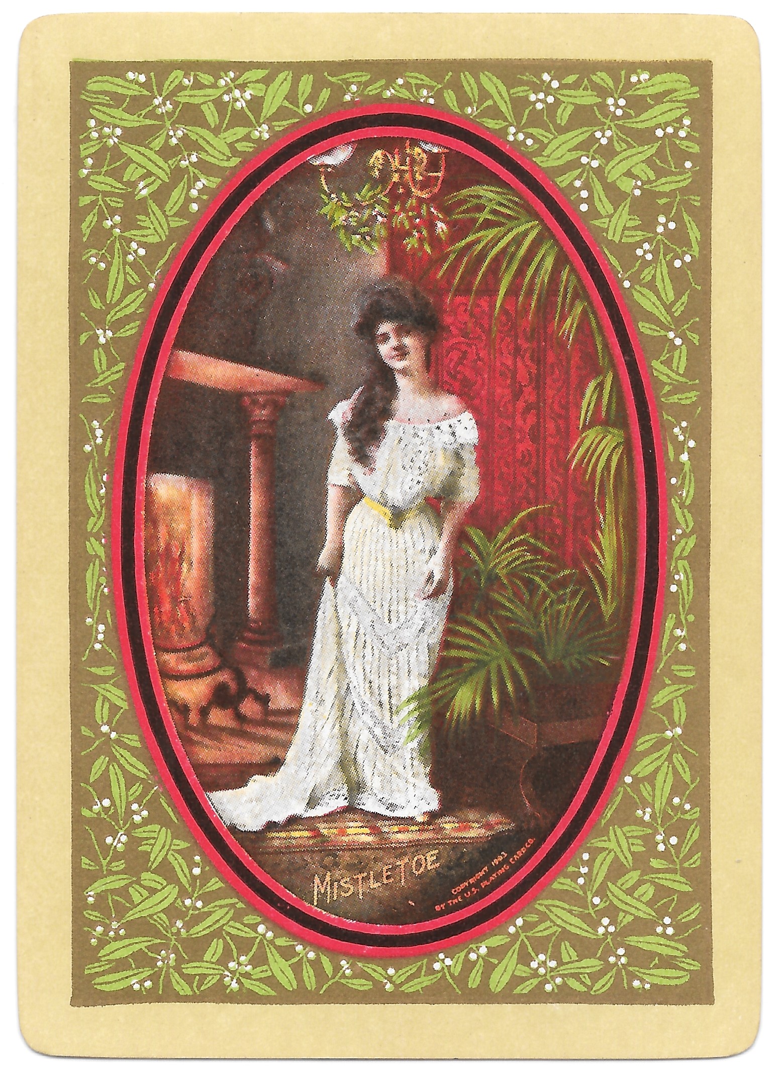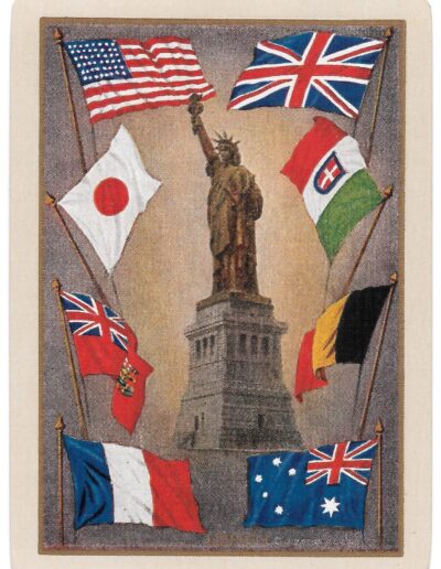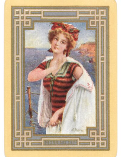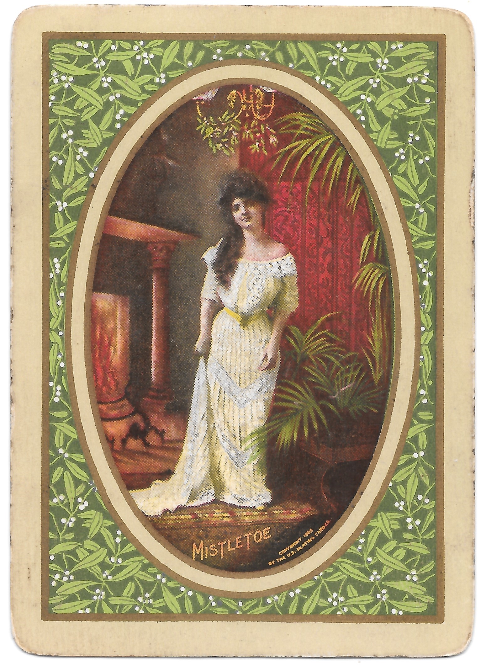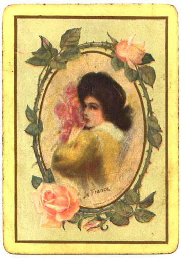 The Pictorial Series began in 1899 just before the United States Playing Card Company moved to a new factory in Norwood, Ohio, opening there in 1901. These back designs used popular artwork from American and European artists. These “Wide Size” (also known as Poker Size) cards were in use until 1924. When whist and later bridge became the card games of choice, the Congress line started printing “Bridge Size” in 1916, and in 1925 the wide size decks became obsolete. Pictured below are every known back design and color/border variation, along with dates and aces used. We strive to be as accurate as possible and will make any necessary changes as they arise.
