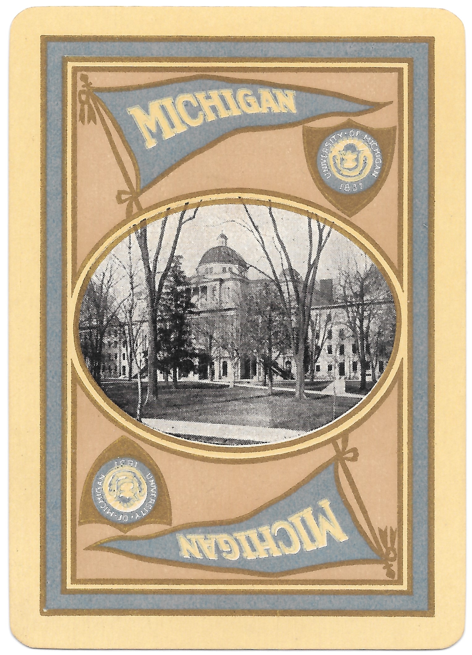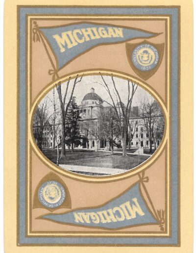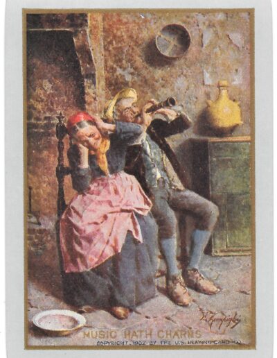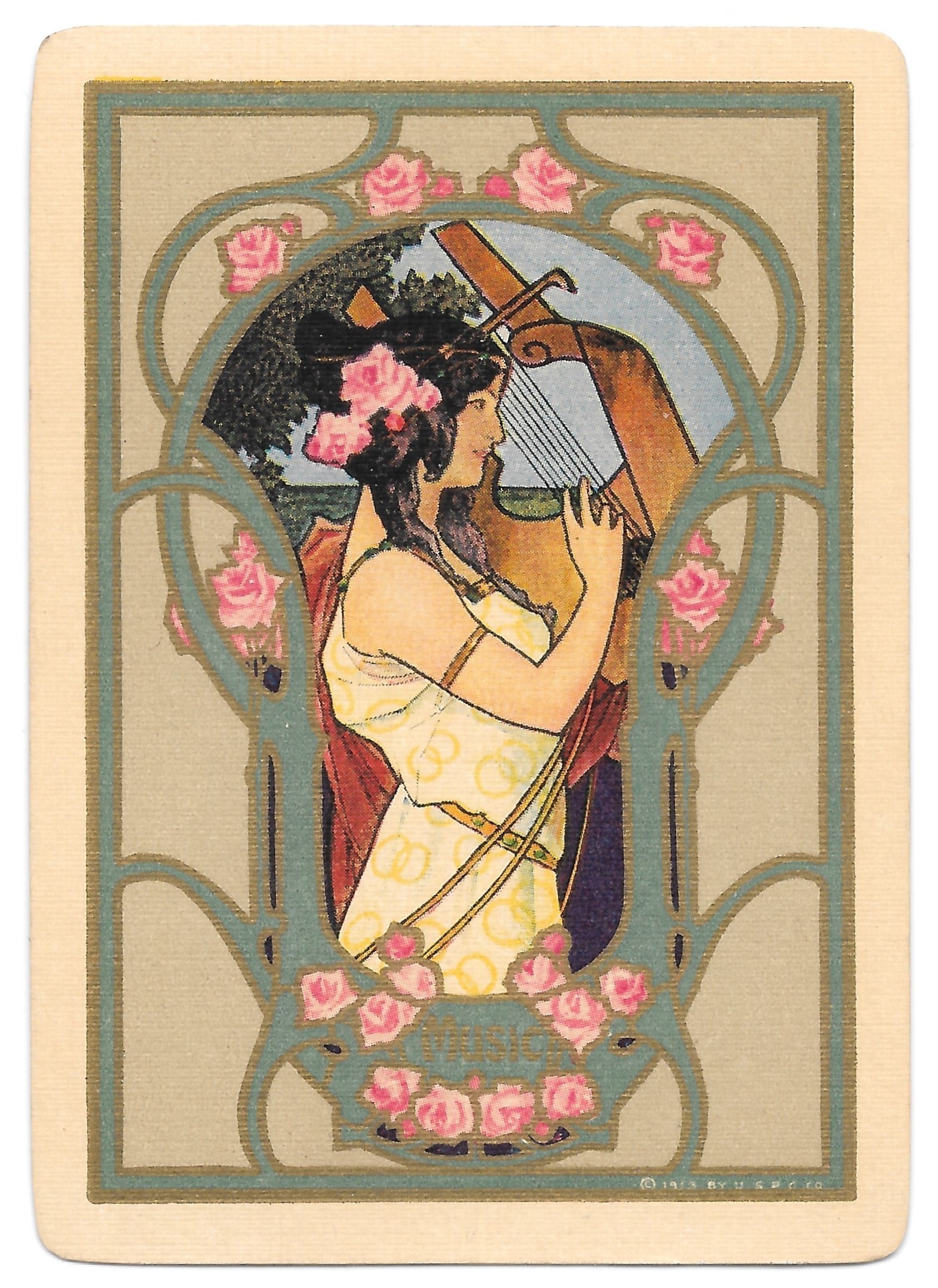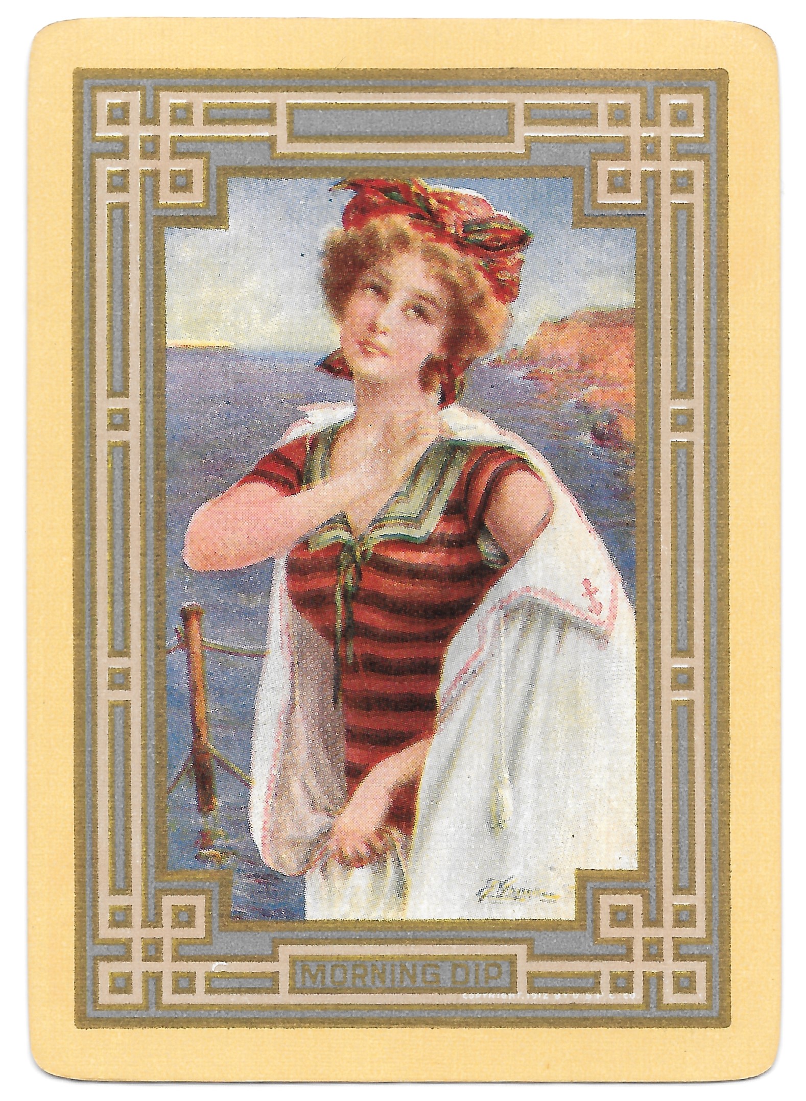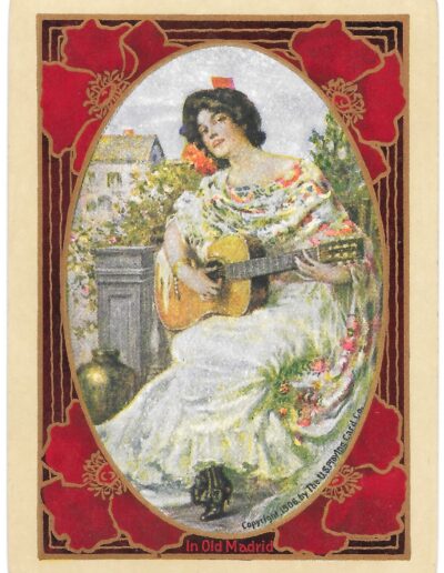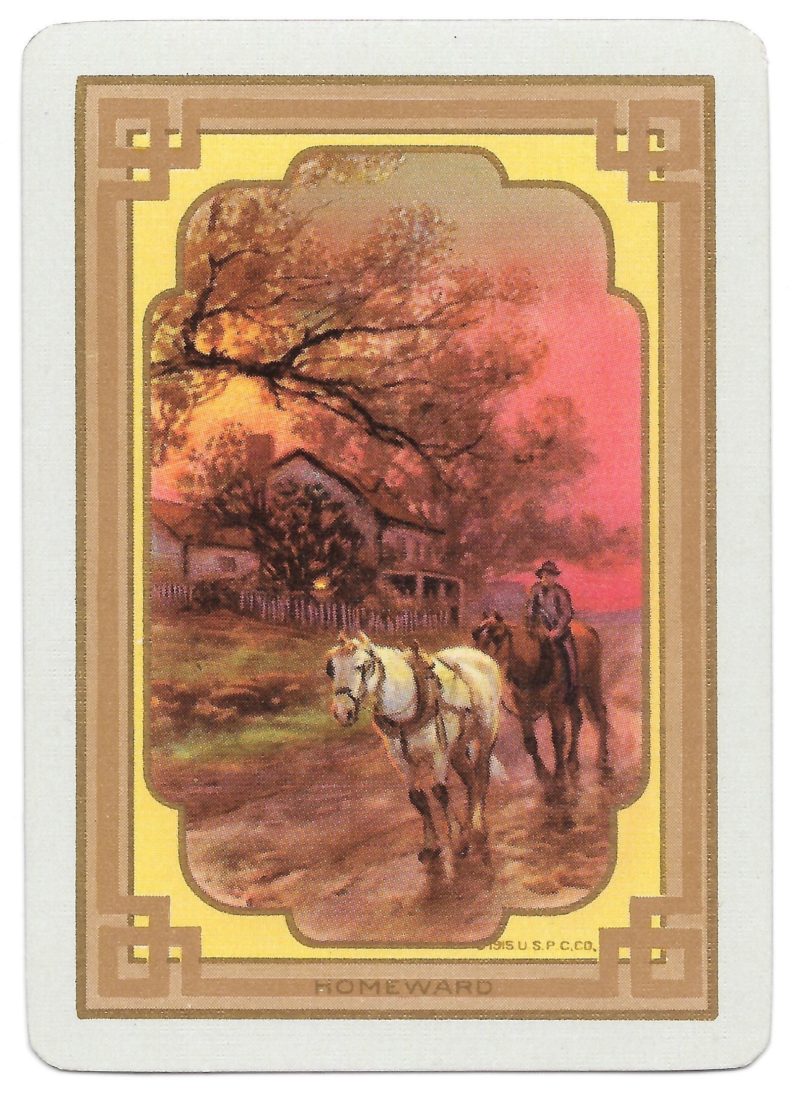 The Pictorial Series began in 1899 just before the United States Playing Card Company moved to a new factory in Norwood, Ohio, opening there in 1901. These back designs used popular artwork from American and European artists. These “Wide Size” (also known as Poker Size) cards were in use until 1924. When whist and later bridge became the card games of choice, the Congress line started printing “Bridge Size” in 1916, and in 1925 the wide size decks became obsolete. Pictured below are every known back design and color/border variation, along with dates and aces used. We strive to be as accurate as possible and will make any necessary changes as they arise.